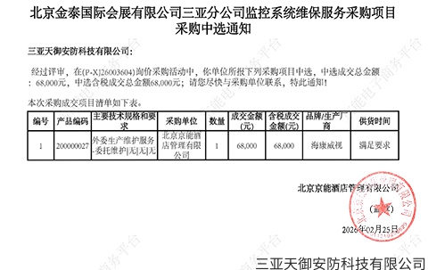 喜訊傳來!我司憑借專業(yè)技術(shù)實(shí)力、完善服務(wù)體系與良好口碑,成功中標(biāo)三亞山嶼湖小區(qū)監(jiān)控系統(tǒng)維保服務(wù)項(xiàng)目。